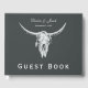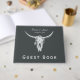 Rustique fusain gris taureau blanc crâne de vache pays western cowboy mariage réception gardien livre d'or. Maison vintage inspirée. Ancien style sauvage ouest antique. Simple, cool, tendance, design animal de ferme moderne. Personnalisez votre script. Copyright de l'image Marg Seregelyi Photography.
