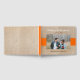 Le design de ce livre d'hôtes mariage comporte une photo de burlap texturé et est accentué d'une bande orange solide à travers le centre. Un cadre photo personnalisé, au centre de l'avant, permet d'ajouter une photo du couple. Le texte personnalisé donne le nom de la mariée et du marié ainsi que la date du mariage.