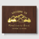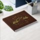 If you own a ranch or cabins or any other properties in or near the mountains, let your guests sign this rustic guestbook with gold foil lettering and an illustration of a mountain landscape printed in real gold foil against a printed faint wood texture in warm dark brown. Personalize the guestbook with the name of your rental home, rental cabin, guest cabin or ranch and add your city or town and state. Welcome to is written in an arch above the mountain tops, but all text is editable so you can customize the guestbook to suit your small business.