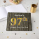 Ce livre d'or porte le numéro ordinal "97th" avec un aspect faux/imitation or. Il est également doté d'un nom personnalisé et d'un arrière - plan rustique en faux bois. Il pourrait être utilisé à une fête pour quelqu'un célébrant son quatre-vingt-dix-septième anniversaire. [~Z0000053]
