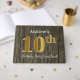 Ce livre d'or est orné du numéro ordinal "10e" avec un aspect faux or. Il est également doté d'un nom personnalisé et d'un arrière - plan rustique en faux bois. Il pourrait être utilisé à une fête pour quelqu'un célébrant son dixième anniversaire. [~Z0000053]
