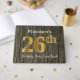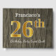 Ce livre d'or est orné du numéro ordinal "26th" avec un aspect faux/imitation or. Il est également doté d'un nom personnalisé et d'un arrière - plan rustique en faux bois. Il pourrait être utilisé à une fête pour quelqu'un célébrant son vingt-sixième anniversaire. [~Z0000053]