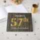Ce livre d'or est orné du numéro ordinal "57th" avec un aspect faux/imitation or. Il porte également un nom customisé et un arrière - plan rustique en faux bois. Il pourrait être utilisé à une fête pour quelqu'un célébrant son cinquante-septième anniversaire. [~Z0000053]