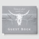 Thème rustique gris clair taureau blanc crâne de vache pays western cowboy réception mariage keepsaké livre d'or. Vintage ferme inspirée de la texture en mauvais état imprimé. Ancien style sauvage ouest antique. Cool, tendance, design animal de ferme moderne. Personnalisez votre script. Copyright de l'image Marg Seregelyi Photography.