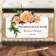 Un livre d'hôtes avec des roses sur un bois rustique avec burlap et arrière - plan dentelle. Parfait pour un mariage à thème champêtre ou rustique. Un guéridon correspondant peut être trouvé ici : https://www.zazzle.com/rustic_country_roses_wedding_pedestal_sign-256419160491767472