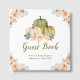 Rustic baby shower guest book with sage green and peach pumpkins and floral flower arrangements. Perfect for an autumn fall baby shower. The words can be changed to suit your own details or requirements