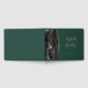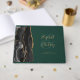 Cet élégant livre d'invités de mariage présente un design d'agate d'aquarelle noire, orné d'une parties scintillant en faux or. Customisez facilement le texte de couleur or sur un arrière - plan émeraude, avec les noms du couple dans la calligraphie d'écriture géante sur une grande esperluette. Ajoutez le texte de votre choix à l'avant et à la colonne vertébrale.