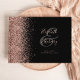 Ce livre d'or élégant pour invités de mariage présente une bordure gauche avec des paillettes de faux or rose sur fond noir. Personnalisez facilement le texte rose avec les noms des mariés dans une calligraphie fantaisiste au-dessus d'une grande esperluette grise. Ajoutez du texte supplémentaire de votre choix sur le devant et le dos.
