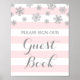 Veuillez signer notre affiche de livre d'or pour baby shower, bridal shower ou mariage avec des flocons d'argent et rose clair, parfait pour une baby shower d'hiver ou de Noël.