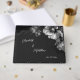 This elegant contemporary wedding guest book features silver flowers on a black background with bride and groom name and the wedding date.