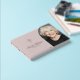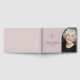 Livre d'or funéraire commémoratif avec une photo à l'intérieur d'une demi-arche et une simple croix chrétienne.