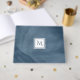 Un livre d'hôtes en marbre simple et subtil en bleu marine avec un badge carré blanc moderne que vous pouvez personnaliser en ajoutant votre monogrammed initial à. Il fait partie de la collection Sailor Blue Subtle Marble Monogram.
