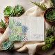 Des polices uniques, des succulents colorés à l'aquarelle et des arrière - plans rustiques en planches de bois sont les points forts de ces produits mariages mélangés et assortis.Ce magnifique livre d'hôtes mariage a des bordures d'angle de feuillage sur un arrière - plan de bois patiné et clair. Un modèle est fourni pour saisir votre message personnel, les initiales de la mariée et du marié et la date du mariage qui sont centrés dans un petit étiquette à l'arrière. Recherchez ID515 pour voir tous les produits correspondants dans ce jeu.