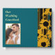 Preserve your guests' heartfelt messages in this bold modern teal blue and gold sunflower guestbook. This striking design features your favorite engagement or pre-wedding photo as the hero element on the cover, beautifully framed in gold and surrounded by artistic sunflower silhouettes with integrated teal accents and luxe striped patterns. Your names and wedding date are elegantly displayed on the spine.