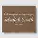 Ce livre d’or sur les funérailles et les condoléances funéraires présente le message "Nous n’oublierons jamais notre temps avec vous", ainsi que le nom personnalisé et les dates de naissance et de décès de la personne décédée. Il pourrait être utilisé pour enregistrer des souvenirs chéris de quelqu'un qui est récemment passé. Il a un arrière - plan marron, et un texte blanc.