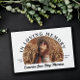 Service commémoratif livre d'invités en blanc avec texte noir et la photo de votre être cher en forme de demi-lune avec In Loving Memory en texte courbe au-dessus de la photo. Laissez vos amis et votre famille honorer votre être aimé avec un message personnel dans ce livre d'invités funéraires personnalisé avec photo, nom, et années de vie.