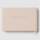 Design features a pale pink background over entire product. Front displays the names of bride and groom in an elegant Nuptial font. The photo you supply is displayed as an oval in top right corner. Bottom left corner features the image of a white cross and joined rings. Reverse features the words, "The Beginning" in same Nuptial font. Spine displays the phrase, "Our Wedding" also in Nuptial font. All text is customizable. Designed to coordinate with "The Refined Catholic Wedding Suite" collection.