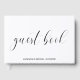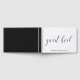 Livre d'or de la fête de mariage avec typographie présentant le titre "livre d'or" en calligraphie noire, et votre nom et le titre de l'événement ci-dessous, sur fond blanc. Vos informations sont également sur la tranche. La tranche et le dos sont noirs et peuvent être changés en n'importe quelle couleur que vous souhaitez. La mise en page simple et minimale et les nombreux espaces ouverts donnent à ce design une sensation moderne et la lettre calligraphiée lui donne une touche chic. Affichez ce livre d'or sur votre table basse ou étagère à livres et sortez-le pour lire les messages d'amour chaque fois que vous voulez vous rappeler la célébration avec vos amies avant votre jour spécial.