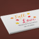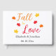 Cadeaux d'événement personnalisés pour tomber amoureux avec une palette de couleurs d'automne rouge, orange et jaune avec des feuilles d'érable. Le texte peut être personnalisé pour un mariage, une douche de mariée, une baby shower ou tout autre événement