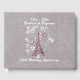 Ce livre d'or personnalisé pour votre fête ou célébration est gris avec une illustration bordeaux de la tour Eiffel en France entourée de fleurs de marguerite blanche et le texte Oh Paris. Personnalisez vos informations sur la couverture avec les modèles.