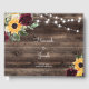 Ce livre d'hôtes de programme de tournesol rustique et de mariage rose est parfait pour une cérémonie de jardin extérieur. Il présente de beaux tournesols couleur aquarelle et des roses bordeaux avec une végétation verte sauge sur un arrière - plan en bois. Il est parfait pour un mariage de jardin ou un mariage de grange de campagne. Le jeu de couleurs jaune et vert sauge est une belle palette de couleurs pour une fin d'été ou mariage de automne. Pour plus de personnalisation, cliquez sur le lien "customiser plus loin" et utilisez l'outil de conception pour modifier ce livre.