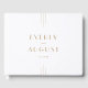 Ce livre d'hôtes mariage de l'Everly Collection présente un design blanc minimaliste avec des lignes art déco fines et un style or chaleureux. L'aménagement centré et l'espacement généreux offrent un aspect poli et moderne. Personnalisez la couverture avant avec les noms du couple et la date du mariage.