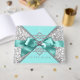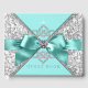 Turquoise livre d'hôtes bleu avec belle arc en diamant sur un arrière - plan tourbillon turquoise bleu et gris argenté damassé. Cet élégant livre d'hôtes bleu turquoise est facilement customisé pour votre événement en ajoutant simplement le texte de votre choix. Il s'agit d'un design imprimé sans vrais bijoux, arcs, etc.