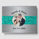 Un livre d'invités de mariage moderne et élégant pour votre grand jour. Ajoutez votre propre photo à ce livre d'or et personnalisez les noms et la date du mariage. Le design est composé d'un arrière - plan argenté, la photo est encadrée d'une bordure brillante turquoise.