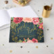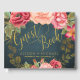 Livre d'hôtes personnalisé classique avec des pivoines et des fleurs rouges, roses et rousses sur minuit sombre arrière - plan en tableau noir bleu marine avec un élégant script de calligraphie dorée Idéal pour printemps nuit d'été ou automne | élégant jardin rustique | mariages à thème jardin extérieur.