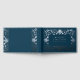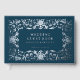Real Foil Vintage Floral Blue Mariage Guest Book dispose d'une bordure à cadre de fleurs vintage en feuille d'argent avec vos noms, emplacement et date mariage sur un arrière - plan bleu. Ajoutez votre texte personnalisé sur la colonne vertébrale du livre d'or. Créé par Evco Studio www.zazzle.com/store/evcostudio