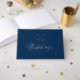 Un beau livre d'hôtes mariage en feuille d'argent avec typographie traditionnelle. Un superbe design de livres d'hôtes bleu marine et argent mariage avec une typographie minimaliste classe. La typographie de script traditionnel crée un design élégant et intemporel de feuille d'argent mariage livre d'invités.
