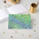 Une interprétation moderne du style moderne du milieu du XXe siècle : des formes atomiques qui se chevauchent superposées à un motif digital en vert vif et bleu frais.