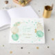 Livre D'or vert menthe et fleurs blanches or fleuri mariage