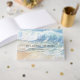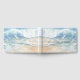 Un beau livre d'or/funéraire avec une aquarelle représentant des vagues de l'océan se dirigeant vers une plage de sable.