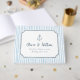 A wedding guest book to match our Whimsical Retro Blue Stripes Wedding collection. This design features a navy blue hand drawn frame against a light blue striped background. At the top of the book, there is a doodle scribble illustration of an anchor. Ask friends and family to sign your wedding guest book to create a keepsake to look back on for years to come. View the collection linked on this page for the full wedding suite. Feel free to message me with any questions, I'll be happy to help!