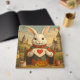 Fall in love with this charming and unique take on the White Rabbit from Alice in Wonderland! This delightful illustration portrays a cute, anthropomorphic white rabbit seated at a rustic table, holding a heart-adorned invitation or card. Dressed in a whimsical red and green outfit, he's ready for a tea party in an enchanting landscape dotted with fairytale castles, colorful banners, and blooming flowers. Teacups and a cake complete this sweet and imaginative scene, perfect for fans of Alice in Wonderland and anyone who adores whimsical, heart-filled art.