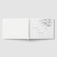 This elegant quiet luxury wedding guest book features white sculptured roses on a white background, bride and groom name in an elegant modern font and handwritten script.