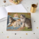 Ce livre d'hôtes présente le tableau de Wilhelm Schwar représentant une chatte-mère et ses chatons (The Proud Mother Cat Cat). Les oeuvres d'art classiques se trouvent à l'avant et à l'arrière. Le texte est personnalisable/amovible.