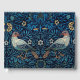 Tapisserie de William Morris (1834-1896) motif d'oiseaux. Original du musée MET. L'oeuvre est une reproduction photographique d'un textile basé sur le design William Morris "Birds", un design textile saisissant qui capture l'interaction délicate entre les éléments aviaires et botaniques. Au centre de la pièce se trouvent des oiseaux au plumage blanc et brun, qui se démarquent nettement sur fond de feuillage bleu et vert luxuriant. Le design détaillé est tissé dans une composition tapisserie, marquée par ses motifs symétriques et répétitifs. Les fleurs et les éléments naturels sont habilement tissés, contribuant à une esthétique harmonieuse et ornée. Cette pièce exprime un sentiment de beauté complexe par sa représentation méticuleuse des oiseaux et du feuillage. Avec son accent mis sur la symétrie et la stylisation, l'oeuvre invitation les spectateurs à explorer la relation entre la complexité de la nature et l'élégance structurée du design. Les couleurs contrastées et les motifs détaillés créent une expérience visuelle à la fois riche et cohésive, illustrant une intégration de motifs d'inspiration nature dans un support textile.