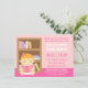 Prévoyez un apport une partie de livre pour la maman de sorte qu'elle puisse construire une bibliothèque et lire des histoires pour endormir et des comptines pour son bébé. Cette invitation orientée de baby shower de livre mignon est parfaite pour l'occasion joyeuse avec le petit bébé avec un arc rose dans ses cheveux lisant heureusement un livre intitulé des histoires pour endormir. L'étagère derrière elle a l'abondance de l'espace pour que plus de livres viennent ! La page inverse a le bébé faire un personnel parler en faveur des livres à partir des invités ! Cette invitation colorée est parfaite pour les mamans qui ont des bébés. Personnalisez facilement avec des détails de partie.
