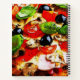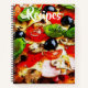 Ajoutez vos recettes favorites dans ce livre de recettes coloré avec une image rapprochée d'une pizza italienne avec tomates, olives noires, champignons et épinards.