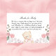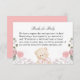 Cette carte d'enclos pour baby shower fille "livres pour bébé" comprend un ours en peluche à l'arc rose aquarelle avec bordure florale.