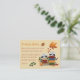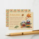 De jolies cartes ocre pour demander à vos invités d'apporter un livre de signe à votre baby shower jumeau boisé. Celles-ci sont équipées de deux ratons ratés : l'un en lecture et l'autre en regardant derrière une pile de livres. Laissez le texte tel qu'il, ou remplacez-le par le vôtre. © ArianeC Illustrations-Tous droits réservés