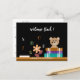Une carte postale mignonne avec un faux tableau avec un ours en peluche regardant derrière une petite tige de livres pour accueillir de jeunes élèves dans une nouvelle année scolaire. Personnalisez-le avec votre nom d'école, et avec votre propre texte. © ArianeC Illustrations-Tous droits réservés