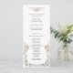 Guidez vos invités à travers la cérémonie sacrée de votre union avec ce livret de messe élégant de notre collection exclusive de mariages catholiques traditionnels. Ce programme de mariage présente une illustration sereine de la Vierge Marie encadrée par une arche botanique de roses vintage et des détails délicats en or, évoquant la sophistication du style Art Nouveau et de la Renaissance.