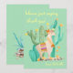 Personnalisez cette carte de remerciement mignonne avec un lama. Le modèle est configuré pour que vous puissiez ajouter votre texte et/ou votre nom sur le devant de la carte (où le texte d'exemple indique "avec amour Gabrielle"). Cette carte verte menthe présente une illustration d'un lama et d'un cactus à l'aquarelle avec un lama blond adorable portant une guirlande de fleurs et une housse de selle. Elle se tient au milieu d'un jardin de cactus avec des fleurs jaunes. Le dos de la carte comporte des plantes du désert avec beaucoup d'espace, au cas où vous voudriez écrire un mot. Veuillez parcourir notre magasin pour voir nos produits assortis et coordonnés.