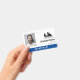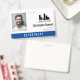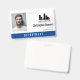 Badge employé de bureau avec un design minimaliste propre en noir, bleu et blanc. Ajoutez une photo de l'employé ainsi que son nom, ses pronoms personnels et sa profession. Personnalisez davantage avec le logo de votre entreprise.