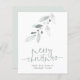 Logo Budget Minimal Joyeux Noël Petite carte. Un prix bas SMALLER 4.5" x 5.6" carte plat pour vos salutations festives sur un stock de carte SEMI GLOSS 110 lb brillant (semblable à l'épaisseur d'une carte postale) VEUILLEZ NOTER : L'enveloppe fournie avec cette carte est légèrement plus grande que la carte elle-même. Style contemporain avec beaucoup d'espace blanc, Joyeux Noël est dans un élégant script set et le reste du texte de chaque côté vous pouvez facilement personnaliser, Au dos remplacer l'exemple d'image avec votre logo d'entreprise ou supprimer si préféré. Une flèche artistique de feuillage blanc et bleu poudreux d'hiver est sur le devant au sommet et coordination bleu poudreux à l'arrière. Les couleurs du texte et de l'arrière - plan peuvent être modifiées si vous souhaitez mieux adapter votre image et votre image de marque via l'option customiser plus loin.