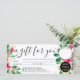 Un cadeau pour vous, Moderne rouge et vert floral aquarelle or parties scintillant confetti chic chèque cadeau, ajoutez votre logo