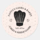 Étiquettes de produits de boulangerie moderne, blanc rose et noir, avec de mignons ustensiles et ingrédients de cuisine illustrés, avec peu de coeurs, et arrière - plan rose. Le casquette de boulanger illustré par un chant fantastique.